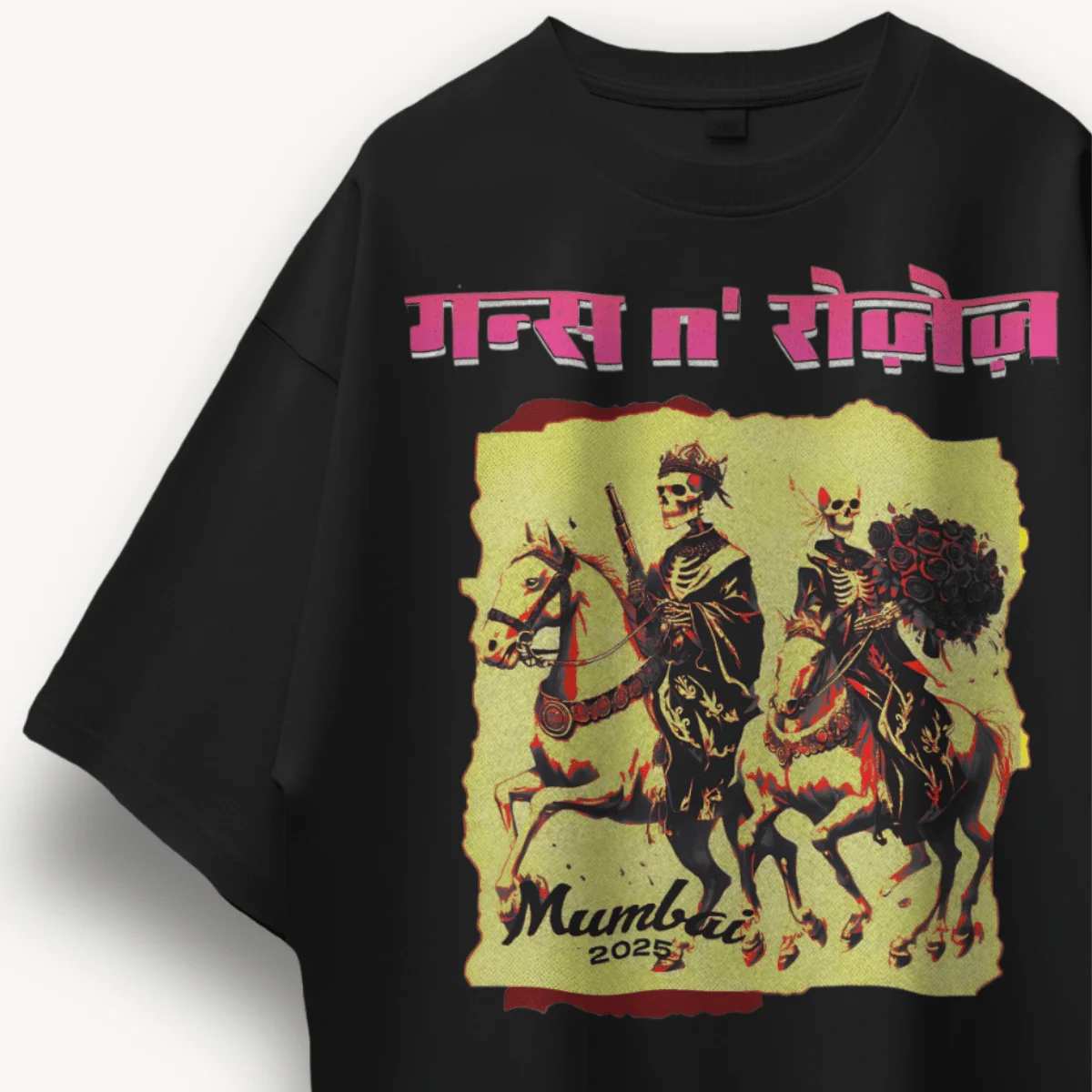 Guns N' Roses Mumbai '25 Skull Black Oversized Tee