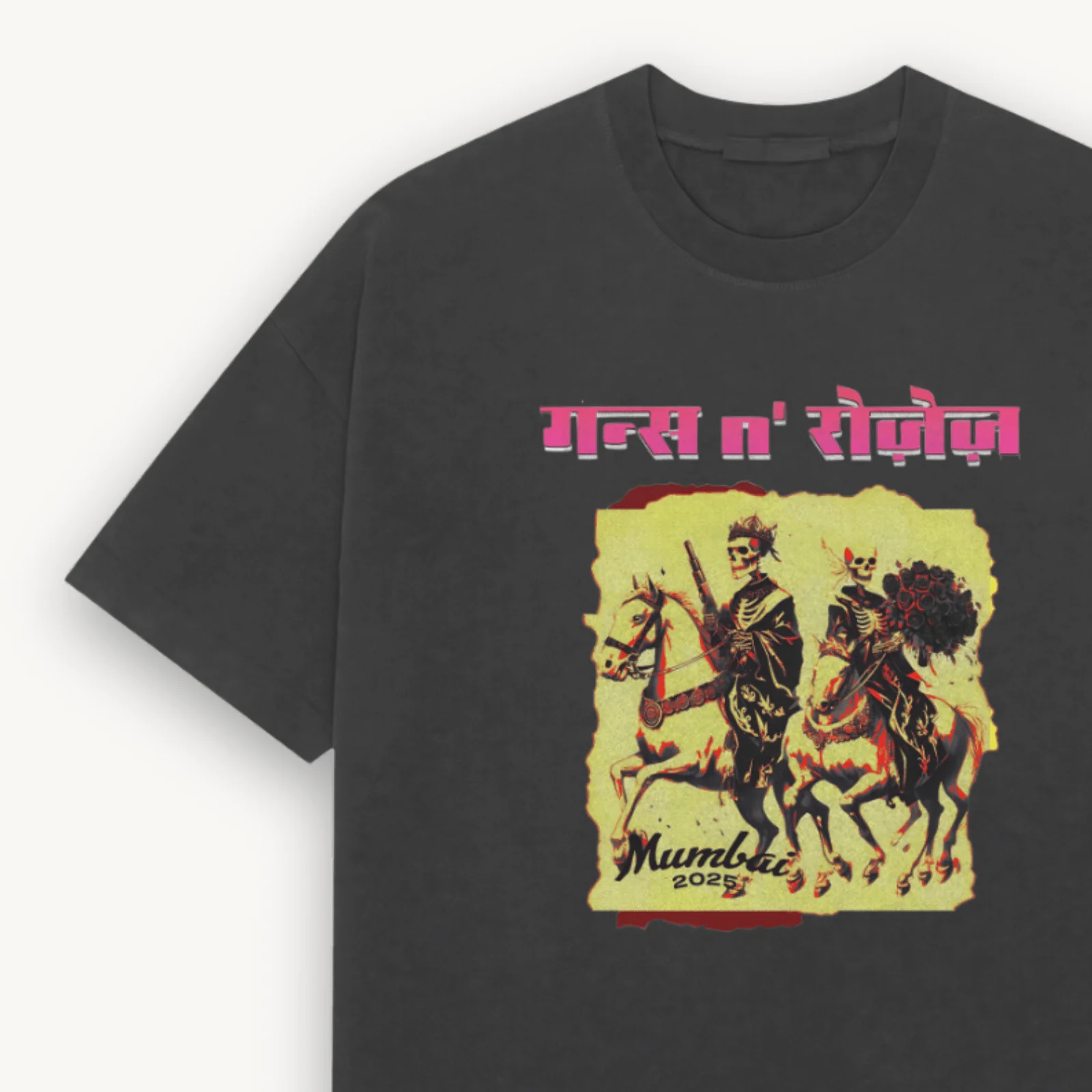 This limited-edition tee is part of the official Guns N’ Roses drop, created exclusively for their 17th May Mumbai tour stop — and approved by the band themselves. Made with heavyweight 210 GSM 100% cotton, it blends comfort and edge with an relaxed silhouette built for loud nights and bold fits.